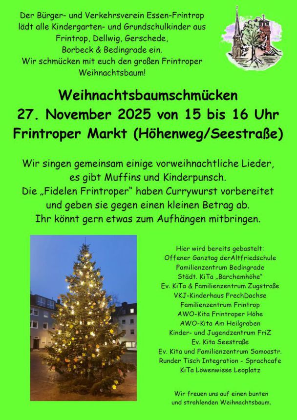 Der Bürger- und Verkehrsverein Essen-Frintrop lädt alle Kindergarten- und Grundschulkinder aus Frintrop, Dellwig, Gerschede, Borbeck & Bedingrade ein.