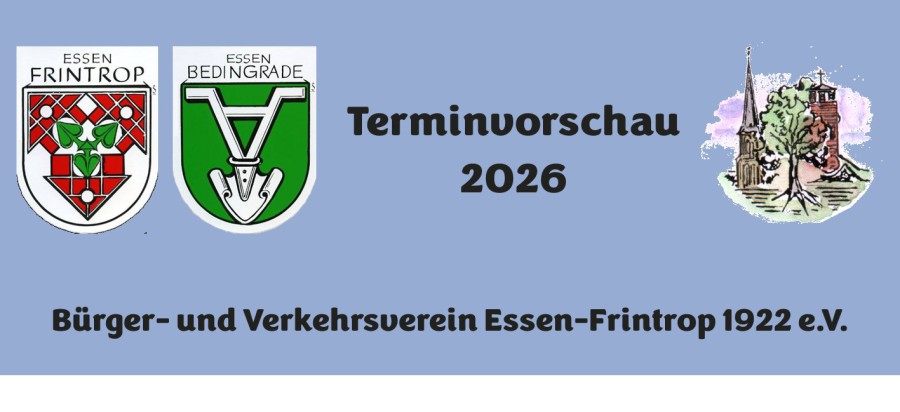 Viel vorgenommen haben sich die Frauen und Männer vom Vorstand des Bürger- und Verkehrsvereins Essen-Frintrop 1922 e.V. für das Jahr 2026. Die großen und wichtigen Termine werden wie üblich auf der riesigen Plakatwand Ecke Höhenweg und Frintroper Straße präsentiert. Mitte Februar wird sie installiert.