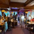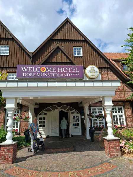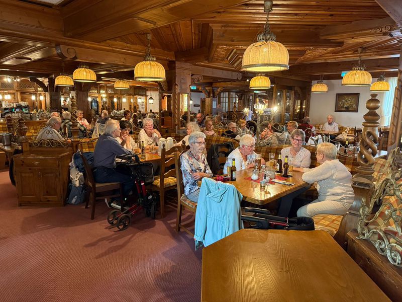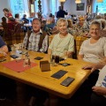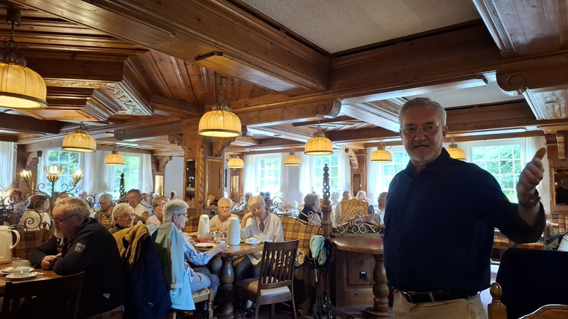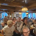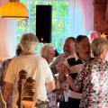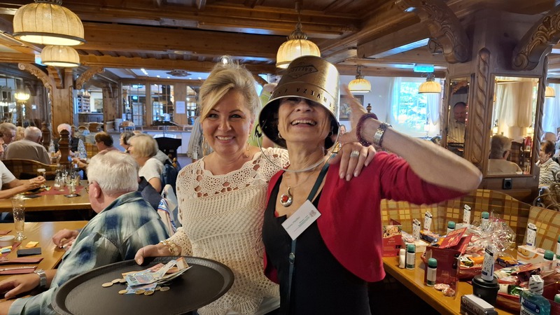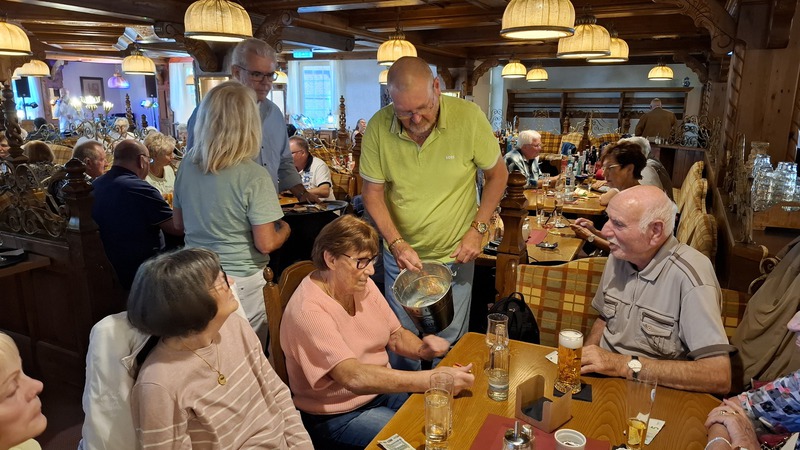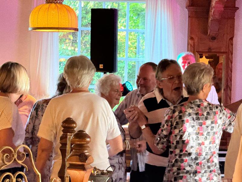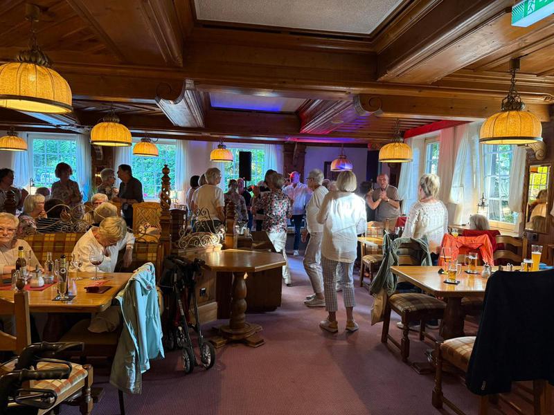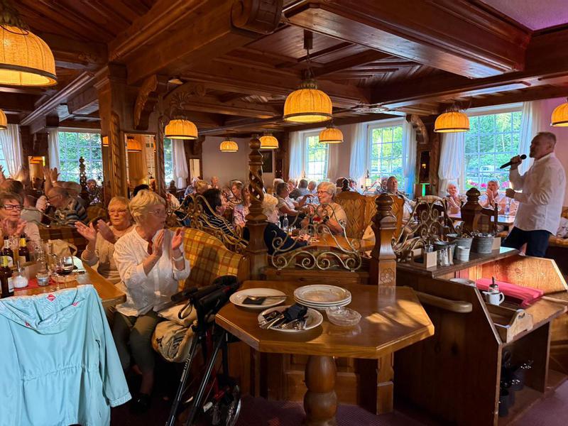 Erstmals statteten wir mit unserer Seniorenfahrt 60plus dem Dorf Münsterland einen Besuch ab. Mit 100 Personen, verteilt auf 2 Reisebussen, ging es am 9. Juli auf die rund einstündige Fahrt ins münsterländische Legden. Dort im Welcome Hotel wartete bereits die Kaffeetafel auf uns. Danach blieb Zeit, sich draußen die Beine zu vertreten und sich die Partylocation "Dorf Münsterland" anzuschauen, in der es an den Wochenenden hoch hergeht. Beim BVV ging es aber an diesem Tag drinnen etwas ruhiger an, auch wenn DJ und Alleinunterhalter Steven Heart die junggebliebenen Mitfahrerinnen und Mitfahrern schnell in Stimmung brachte. Es wurde getanzt, gelacht und schließlich kreiste auch eine Polonaise durch die Stuhlreihen.