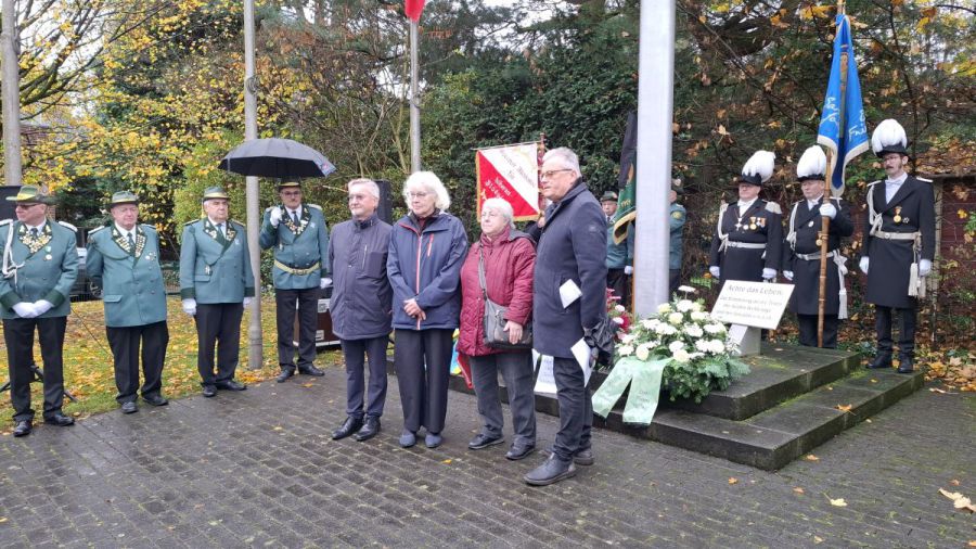 Die Gedenkansprache hielt Dieter Borchert, Vorsitzende des Kreisverbandes. "Seit über 100 Jahren erinnert der Volkstrauertag an die Toten der beiden Weltkriege, an die Gefallenen, Vermissten, an die Opfer von Gewaltherrschaft, Vertreibung und Diktatur. Doch er erinnert uns auch daran, dass Frieden und Menschlichkeit keine Selbstverständlichkeit sind. [...] Der Sozialverband VdK ist in dieser Erinnerung tief verwurzelt. Unsere Wurzeln reichen zurück in die Zeit nach dem Zweiten Weltkrieg. Damals schlossen sich Kriegsversehrte, Hinterbliebene und Opfer des Krieges zusammen, um füreinander einzustehen – für Hilfe, für Anerkennung, für Würde.